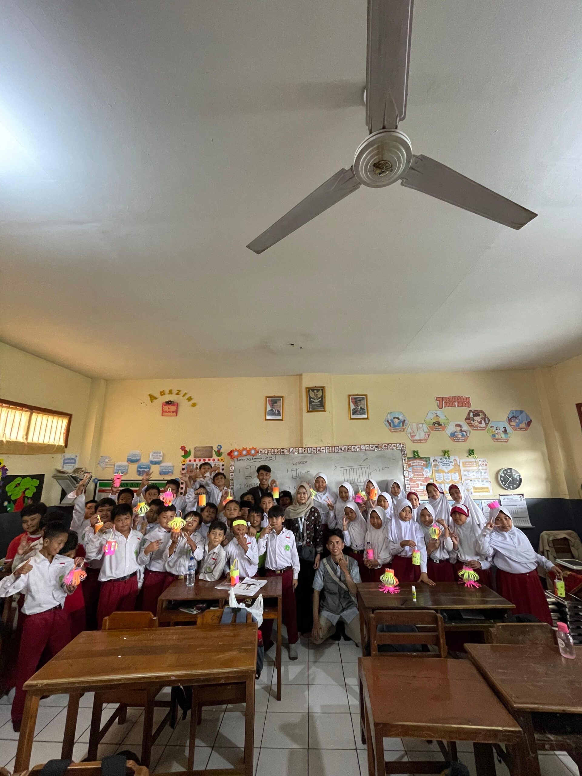 Pelaksanaan program dilakukan dengan memberikan penjelasan singkat mengenai dampak sampah plastik terhadap lingkungan, dilanjutkan dengan praktik langsung pembuatan kerajinan dari botol bekas. Siswa dibimbing dalam proses pemotongan, perakitan, dan penghiasan botol hingga menjadi lampion, tempat pensil, dan celengan. Metode praktik langsung ini membuat siswa lebih antusias, kreatif, dan mudah memahami konsep daur ulang serta kepedulian terhadap lingkungan.