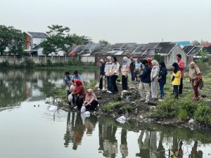 Kegiatan dimulai pada pukul 07.30 WIB dengan simbolis penyerahan bibit ikan dari Dinas Perikanan Kota Semarang kepada pihak Kelurahan yang didampingi oleh mahasiswa. Jenis bibit ikan yang ditebar meliputi ikan nila dan karper, yang dipilih karena daya tahan tubuhnya yang kuat serta memiliki nilai konsumsi yang tinggi bagi masyarakat.